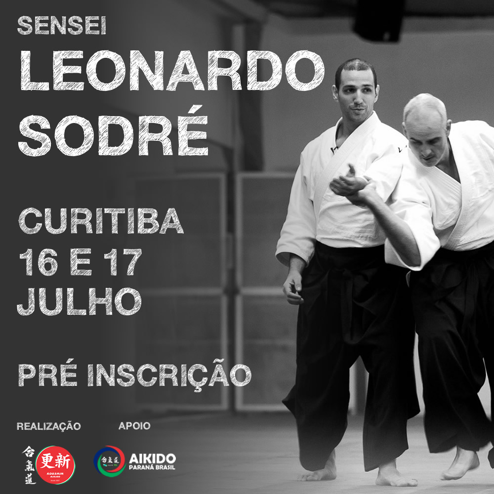 No mês de julho teremos mais um grande evento em Curitiba e região. Sensei Leonardo Sodré vem ao Paraná para realização de um seminário imperdível. Com ampla experiência de prática, inclusive com treinos frequentes no Hombu Dojo no Japão, sensei Leonardo vem ao nosso estado compartilhar sua vivência na prática.